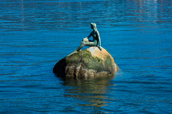 Vancouver BC, Canada - Girl in a Wetsuit is a life-size 1972 bronze sculpture by Elek Imredy of a woman in a wetsuit. Located on a rock in the water along the north side of Stanley Park in Vancouver.