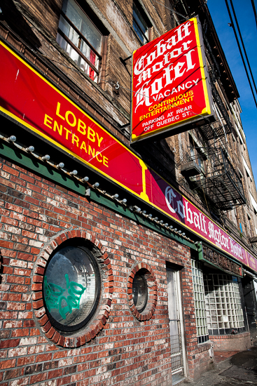 Vancouver BC, Canada - The Cobalt Motor Hotel on Main Street in East Vancouver.