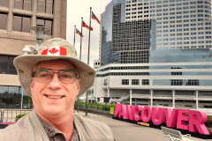 Hello from Downtown Vancouver, Canada, I am at Granville Square next to the Waterfront SkyTrain Station. The building behind the newly installed Vancouver sign is Canada Place.